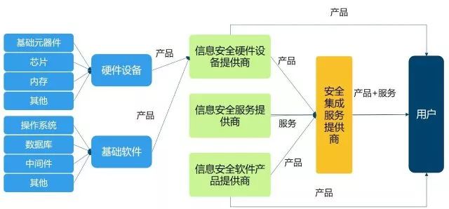网络安全产业链上主要包括信息安全产品 / 服务提供商及信息安全系统集成商。