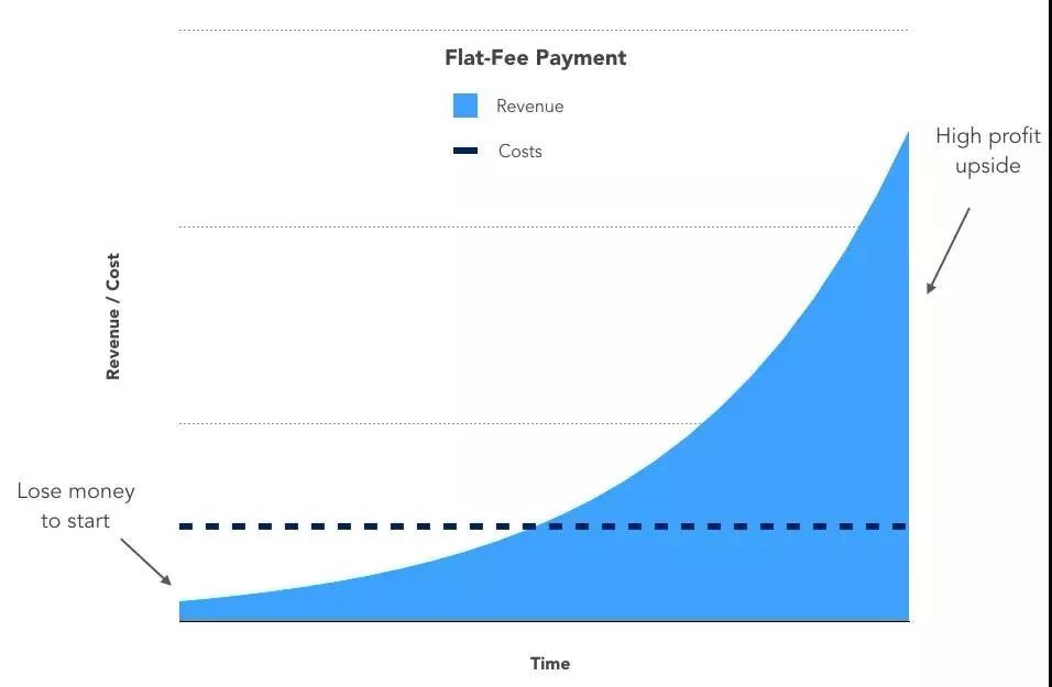 3. 按使用次数分成:比如浏览量,用户每次消费内容之后,平台支付给内容方固定金额。