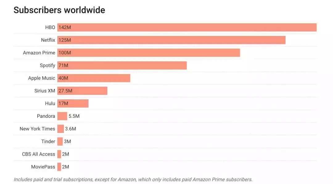 先看一个数据,Netflix 的订阅用户量。截止 2018 年 4 月,Netflix 的全球订阅人数超过 1.2 亿。