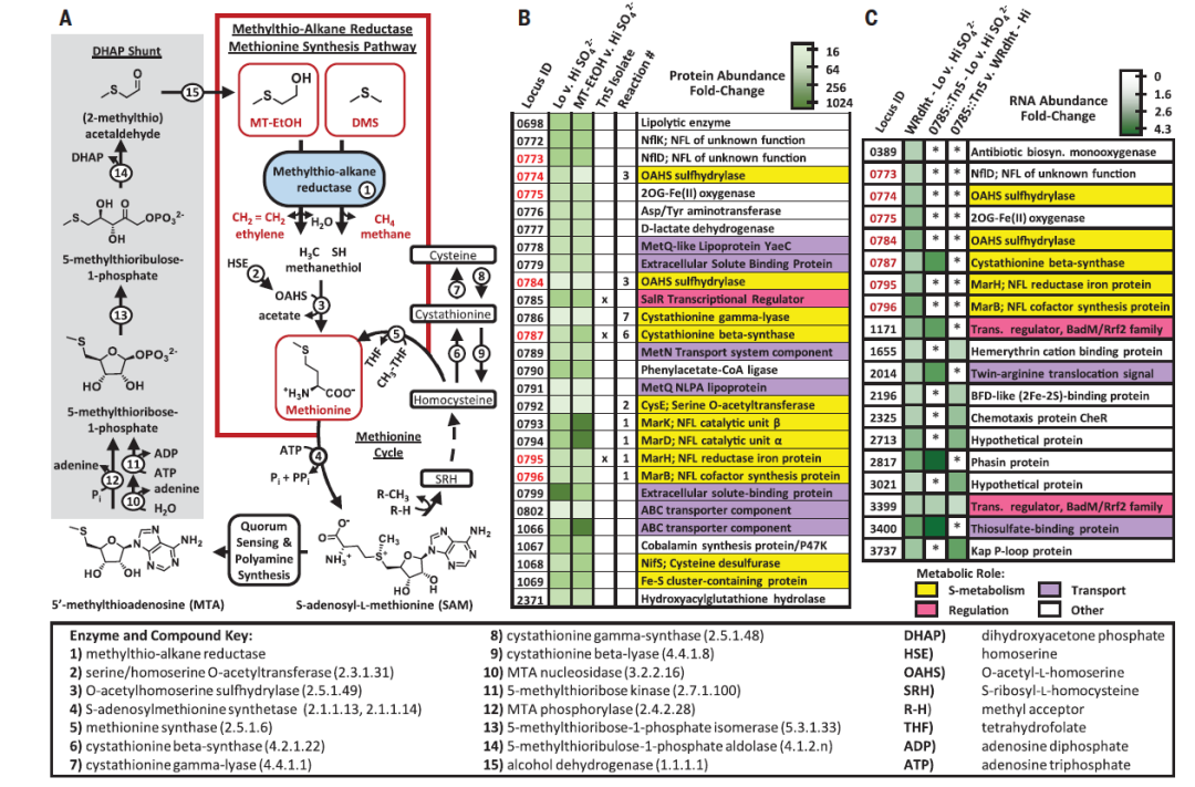 North 和他在俄亥俄州立大学的同事们研究了这种新的代谢过程,他们使用放射性化合物来追踪微生物的前体以及甲硫氨酸和乙烯的产生。但是,他们还需要一种不同类型的分析生物技术,来在该途径和酶之间建立关键的联系。