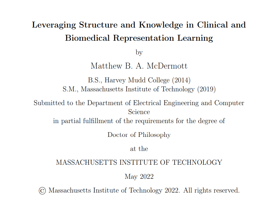 后台回复“B223” 就可以获取《【MIT博士论文】利用临床和生物医学表征学习的结构和知识,223页pdf》专知下载链接