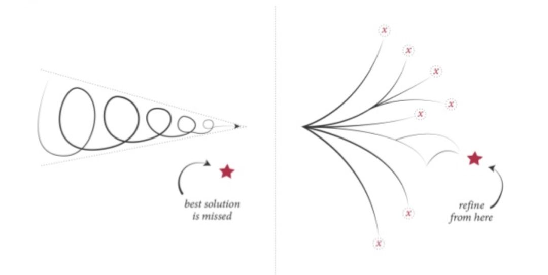 Exploration:选择现在不确定的⼀些⽅案,但未来可能会有⾼收益的方案。