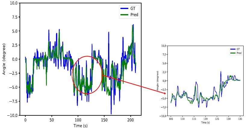 图 6 多模态多任务网络在Udacity数据集上的转向角预测结果