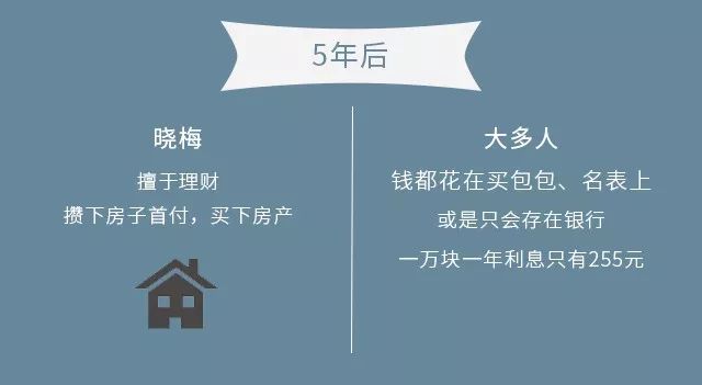 刚毕业,大家都拿3000块工资,别人当月光族,晓梅却能规划自己,每月储蓄1000元。