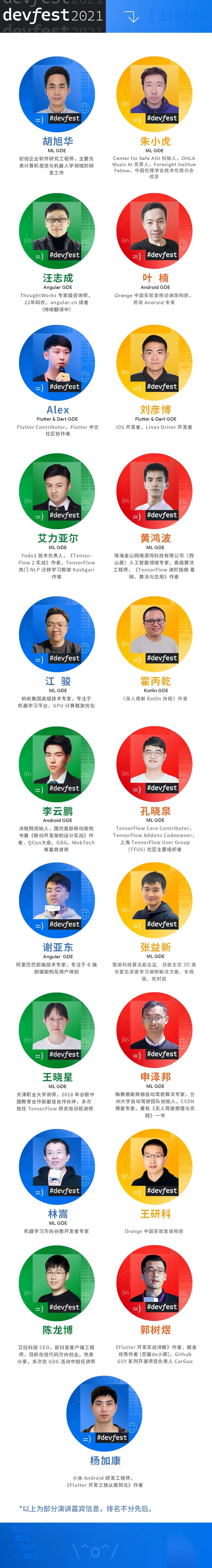 滑动查看 DevFest 2021 部分嘉宾阵容