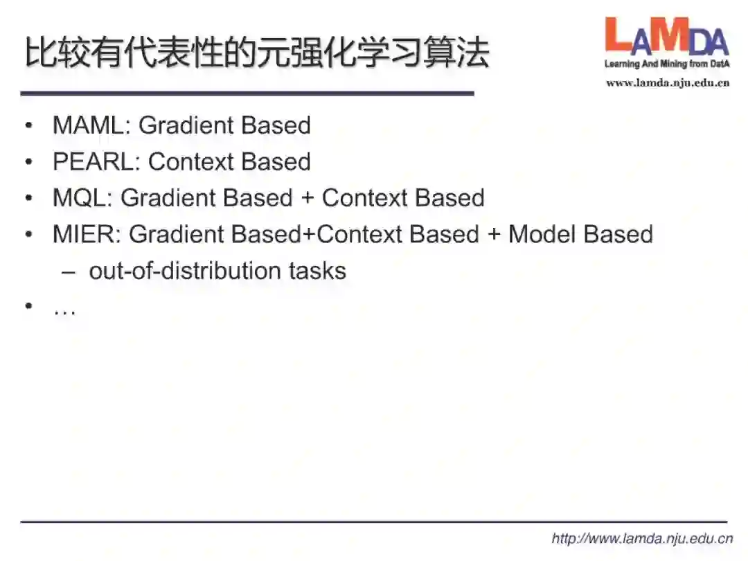 来自南京大学LAMDA实验室徐峰同学对《元强化学习》的总结报告。