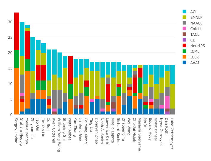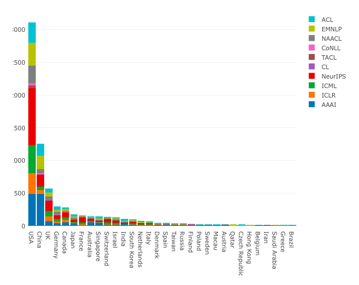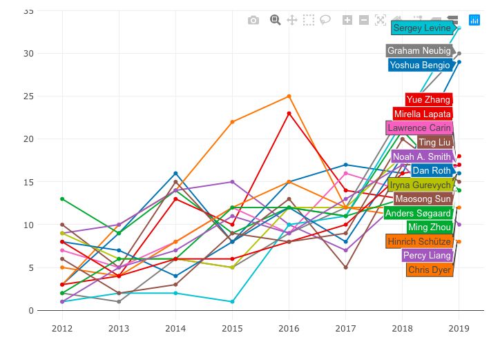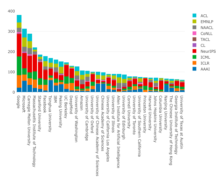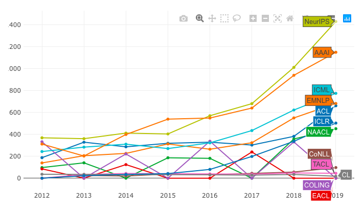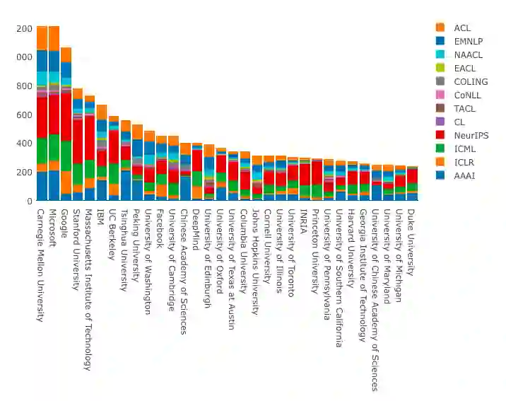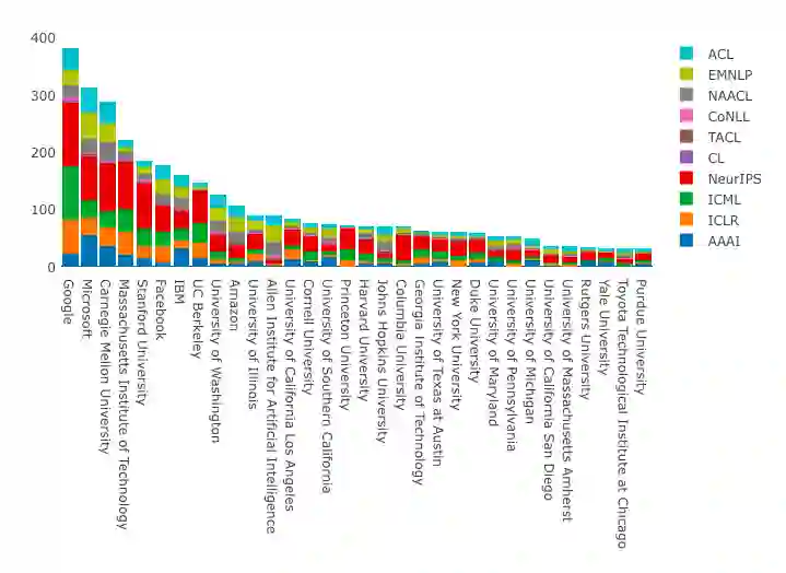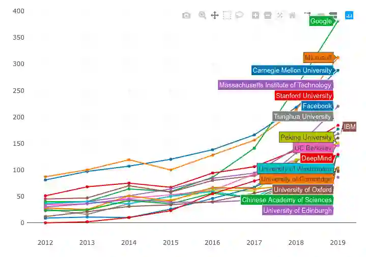 伦敦帝国理工学院机器学习和自然语言处理著名学者Marek Rei 教授从2016年起,每年都会对ML&NLP相关的会议论文进行统计和分析,并一年一度发表分析结果,目前已成为该领域权威性的报告内容。近期,Marek Rei 再次发布2019年度机器学习和自然语言处理(ML&NLP)领域的年度统计。从其分析中,我们可以清晰地看到在ML&NLP领域到底哪家单位最狂(非谷歌莫属),哪些单位实例雄厚,哪位学者研究突飞猛进,以及中美之间实力差距如何巨大。根据Marek Rei教授的报告结果,我们一一进行分析!注:报告统计数据来源于2019年机器学习和NLP相关的会议和期刊,其中统计范围包括ACL,EMNLP,NAACL,EACL,COLING,TACL,CL,CoNLL,NeurIPS,ICML,ICLR,AAAI。