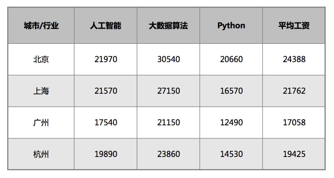最新数据:人工智能、大数据算法、Python相关岗位平均薪资表