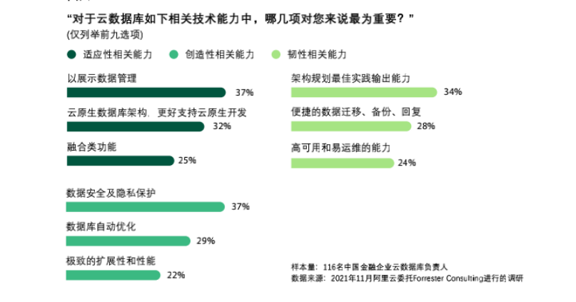 例如,有 86% 的互联网行业受访者需求,随着业务的扩展,云数据库应该能够“自动驾驶”,持续自动优化,始终保障高性能的交易结算。互联网行业企业也更注重对数据资产的开发。互联网行业由于其行业天然属性积累了大量数据,从数据提炼出可复用的数据资产成为数据价值最大化的关键手段,也因此更需要数据库的多模数据支持、HTAP 以及一站式数据管理能力。