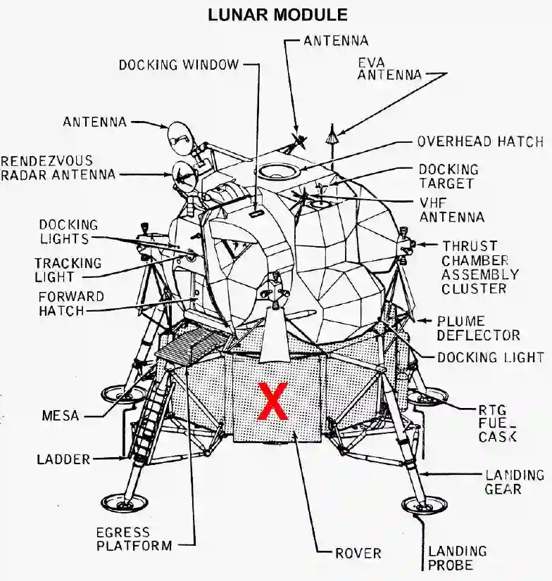 图 8. 登月舱梯子右侧的仪器舱倒是可以考虑捎上月球车