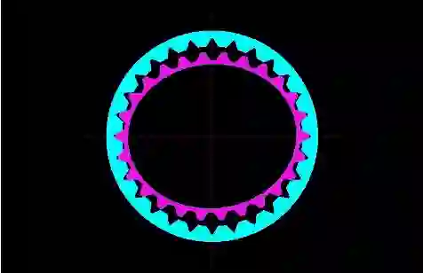 从上图可以看到柔轮比刚轮要少几个齿牙,波发生器的椭圆轮强迫柔轮变形,两端咬合刚轮并旋转,当波发生器绕刚轮走了一周之后,实际上柔轮,磨洋工,基本是原地踏步,还退步了,少走了几个齿牙。对的,我们要的就是这个效果,减速比就出来了,而且非常可观。用视频比较方便看懂一些:
