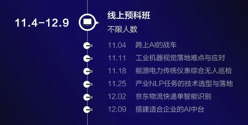 11月4日,百度黄埔学院第四期开启为期6周的线上预科班。就是通过AI思维、AI方法、AI技术、AI选择等环环相扣的课程,让大家“得法前行”,找到新技术推动产业升级的全流程方法论。