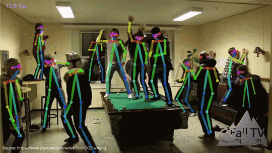 该视频出自2017年的CVPR,Realtime Multi-Person 2D Pose Estimation using Part Affinity Field,是CMU的成果,效果真的Amazing。亮点在于,融合了PCM和PAF的级联cascade形网络结构,网络设计思想和RefineNet的网络设计思想很像,以及相应条件约束的偶匹配(bipartite matchings)算法。