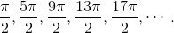 这个序列没有开端也没有结束. 当我说它是 “完全的” 时, 我用前后两头的省略号代表了无穷多个角. 为了避免这些省略号, 我们可以使用集合符号 {π/2 + 2πn}, 其中 n 可以取所有整数.