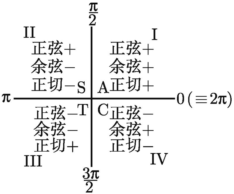 以下是用 ASTC 方法来求介于 0 到 2π 的角的三角函数值的总结.