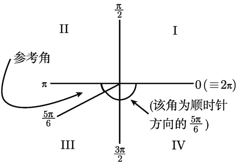 (3) 否则, 找出在代表我们想要的那个角的射线和 x 轴之间最小的角, 这个角被称为参考角.