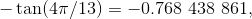因为它不正确. 就应该写 -tan (4π/13), 除非有特别的要求, 让做近似. 在那种情况下, 使用约等号和更少的小数位数, 并恰当化整近似 (除非要求保留更多小数位数):