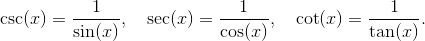 我们也会用到余割、正割和余切这些倒数函数, 它们的定义分别为