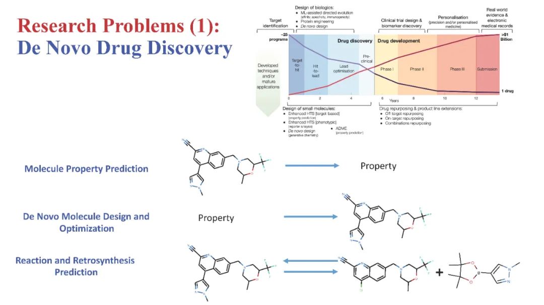 药物发现是一个非常漫长和昂贵的过程,平均需要10年以上,花费25亿美元来开发一种新药。人工智能有可能通过从大量生物医学数据中提取证据,显著加快药物发现的进程,从而彻底改变整个制药行业。特别是,图表示学习和几何深度学习——机器学习和数据挖掘社区中一个快速增长的主题,专注于图结构和3D数据的深度学习——已经看到了药物发现的巨大机遇,因为该领域的许多数据都表示为图形或3D结构(如分子,蛋白质,生物医学知识图谱)。在这次演讲中,我将介绍我们在药物发现几何深度学习方面的最新进展,以及一个新发布的用于药物发现的开源机器学习平台——TorchDrug。