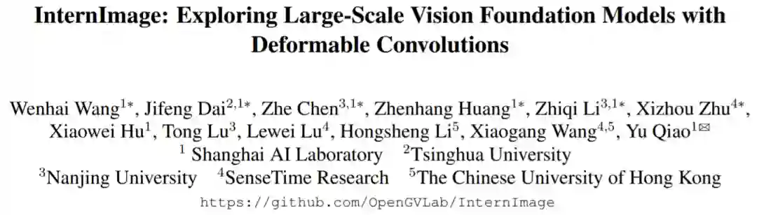 针对上述技术问题,来自浦江实验室、清华等机构的研究人员创新地提出了一个基于卷积神经网络的大规模模型,称为 InternImage,它将稀疏动态卷积作为核心算子,通过输入相关的信息为条件实现自适应空间聚合。InternImage 通过减少传统 CNN 的严格归纳偏置实现了从海量数据中学习到更强大、更稳健的大规模参数模式。其有效性在包括图像分类、目标检测和语义分割等视觉任务上得到了验证。并在 ImageNet、COCO 和 ADE20K 在内的挑战性基准数据集中取得了具有竞争力的效果,在同参数量水平的情况下,超过了视觉 Transformer 结构,为图像大模型提供了新的方向。