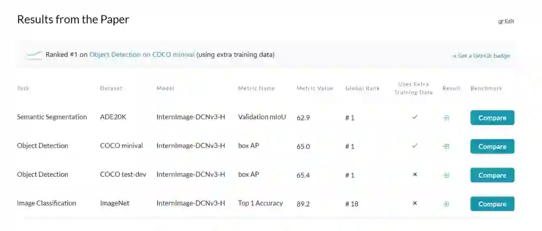 来自浦江实验室、清华等机构的研究人员提出了一种新的基于卷积的基础模型,称为 InternImage,与基于 Transformer 的网络不同,InternImage 以可变形卷积作为核心算子,使模型不仅具有检测和分割等下游任务所需的动态有效感受野,而且能够进行以输入信息和任务为条件的自适应空间聚合。InternImage-H 在 COCO 物体检测上达到 65.4 mAP,ADE20K 达到 62.9,刷新检测分割新纪录。