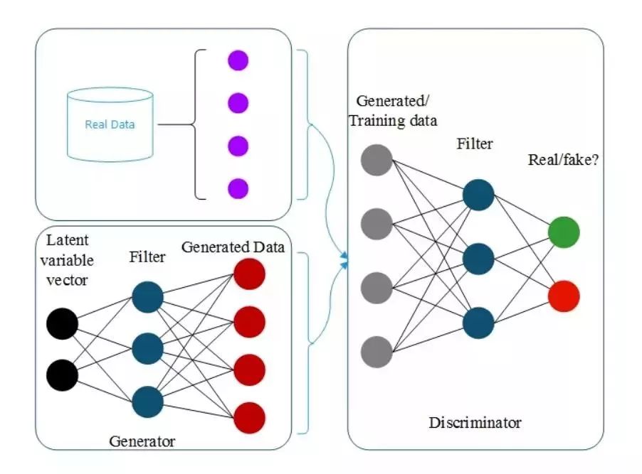 GAN由两个神经网络组成,一个生成网络,一个判别网络,共同工作来产生合成的、高质量数据。生成器根据数据在训练数据集中的分布生成新数据,判别器学习判别真实数据和生成器生成的假数据。GAN的目标函数是基于极大极小博弈的,一个网络要最大化目标函数,而另一个要最小化目标函数。