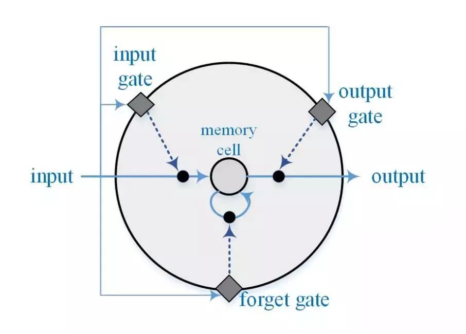 LSTM是RNN的一种扩展。LSTM中,每个神经元除了有反馈环这一储存信息的机制,还有用于控制神经元信息通过的“遗忘门”、“输入层门”及“输出层门”,防止不相关的信息造成的扰动。