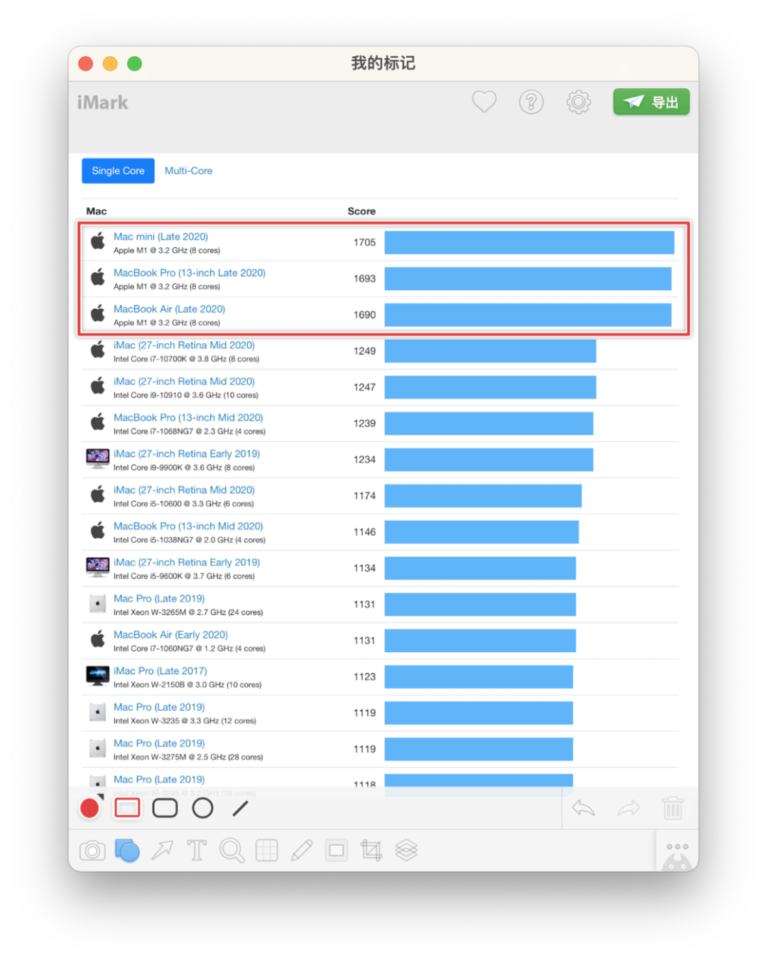 iMark 功能和 iOS 版完全一致,而且支持从外部直接拖入图片进行标注,完成后可以导出到相册或剪贴板,非常方便。