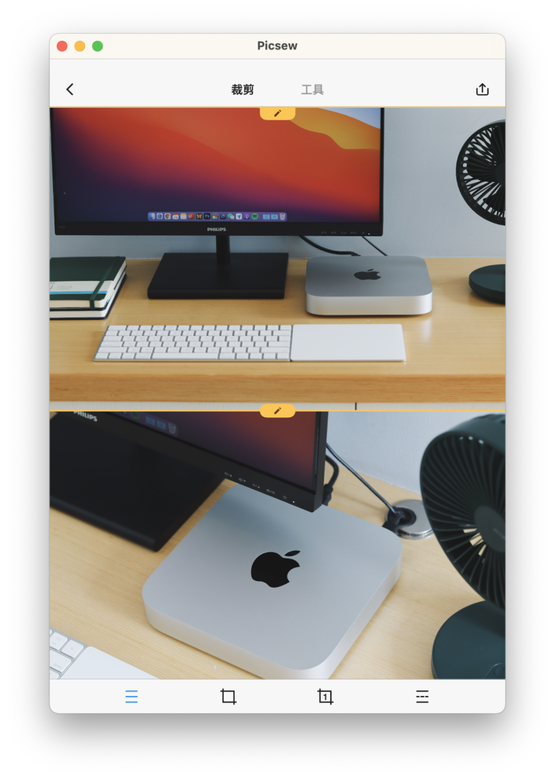 图片拼接工具 Picsew 也可以在 Mac App Store 中下载到,功能也和 iOS 版一致,支持长截图、横向拼接、竖向拼接等方式。比较可惜的是 Picsew 只能从系统相册中选择图片,无法从外部进行选择,或许开发者之后可以稍微优化一下。