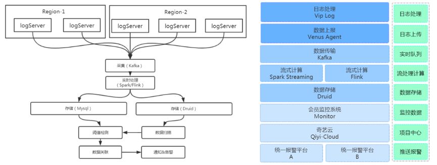 实时处理:会员日志监控90%指标是由实时计算产生的,相关报警数据处理依赖大数据实时分析平台(Realtime analysis platform)进行解析,过滤,处理,聚合之后写入分布式存储当中。