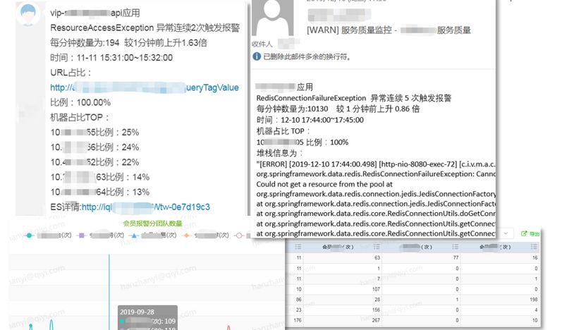 爱奇艺会员服务团队供通用化监控平台,接入方式简单,可快速对系统搭建以上监控体系,并可以面向公司的其他业务团队监控服务。建立完整的跟进机制,多级反馈,提高告警感知,提升排查效率80%以上,预先发现90+次会员客诉问题,客诉率极大降低,监控覆盖400+种异常,提供有效告警4800+次。