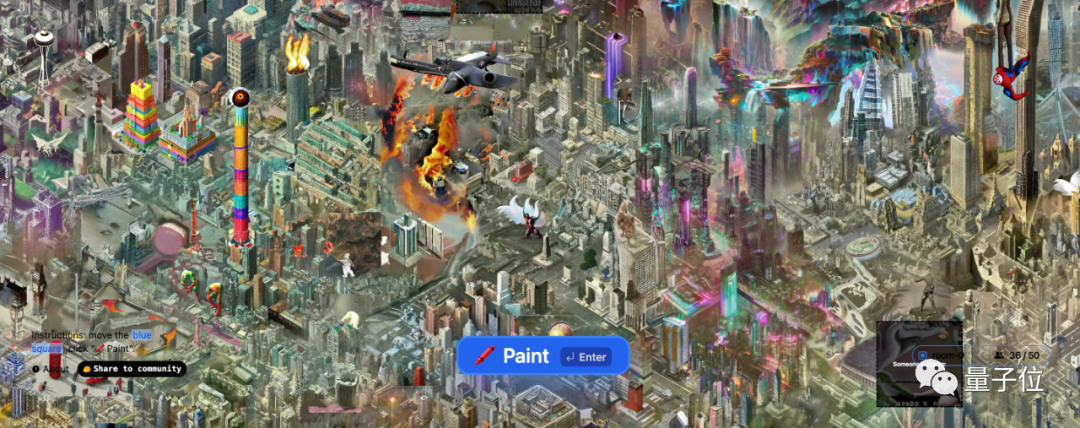 这个游戏名叫Stable Diffusion Multiplayer,是一个免费的多人在线游戏,挂在Hugging Face上。