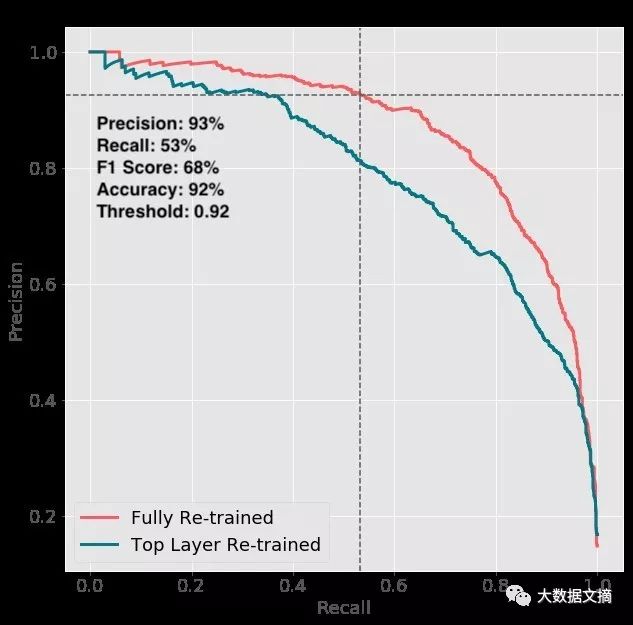 我们用精确率(precision)和召回率(recall)对模型进行评估,并用F1分数(F1-score)和准确率(accuracy)等指标对模型进行监控。