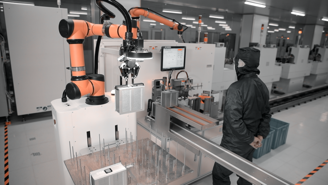 优艾智合通过智能仓储与车间物流的整体解决方案,利用移动机器人在4层楼间的跨区转运和3种不同洁净等级的仓库车间的协同物流,实现了生产过程物流百分之百自动化。