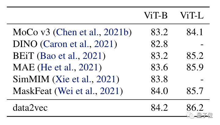 虽然Data2vec三手齐抓,但是性能也没落下。