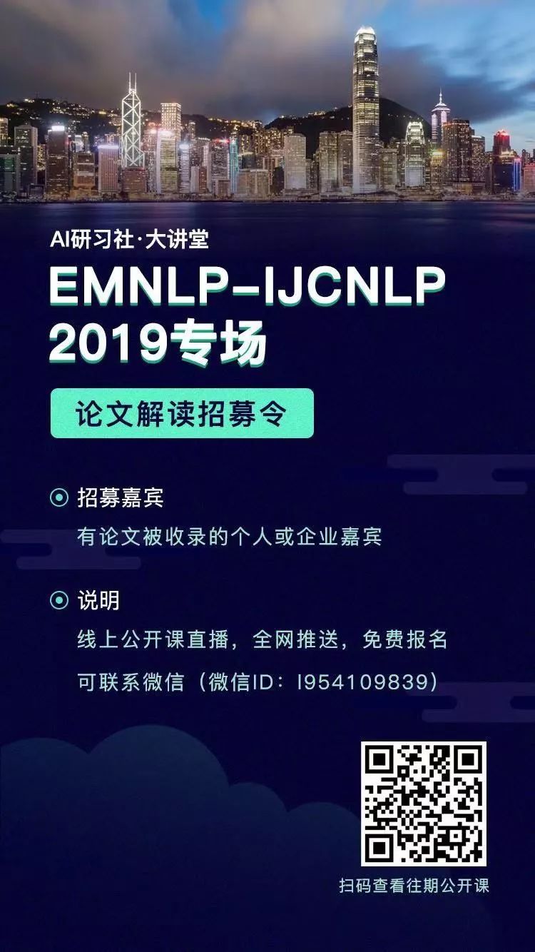 中了 EMNLP-IJCNLP论文的小伙伴,有兴趣来做个直播嘛~