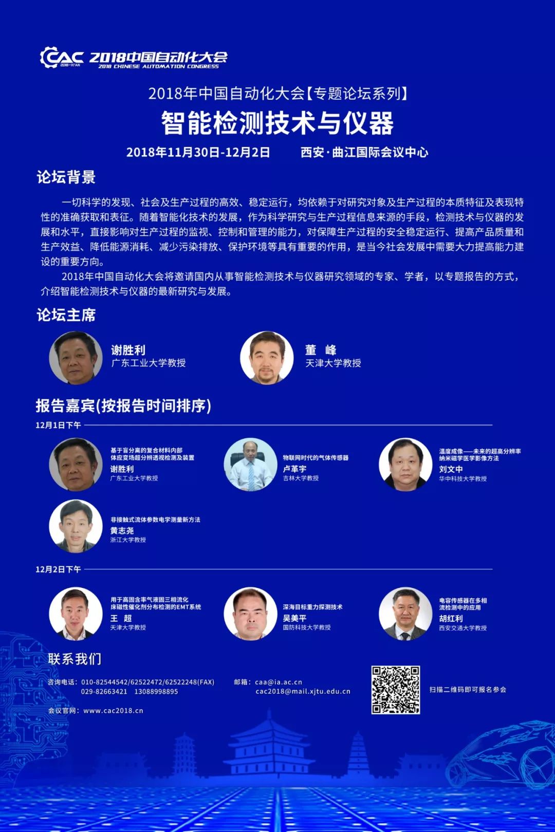 今天为大家介绍的是CAC 2018专题论坛:智能检测技术与仪器的背景,及相应的两位论坛主席与七位报告专家。