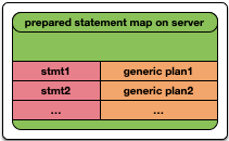 第二阶段:用户通过发送具体的参数来执行第一阶段中定义的Statement。第二阶段可以重复执行多次,每次通过带上第一阶段中所定义的Statement名字,以及执行所需要的参数,使用第一阶段生成的generic plan进行执行。由于第二阶段可以通过Statement名字和附带的参数来反复执行第一个阶段所准备好的generic plan,因此第二个段在Frontend的开销几乎等同于0。