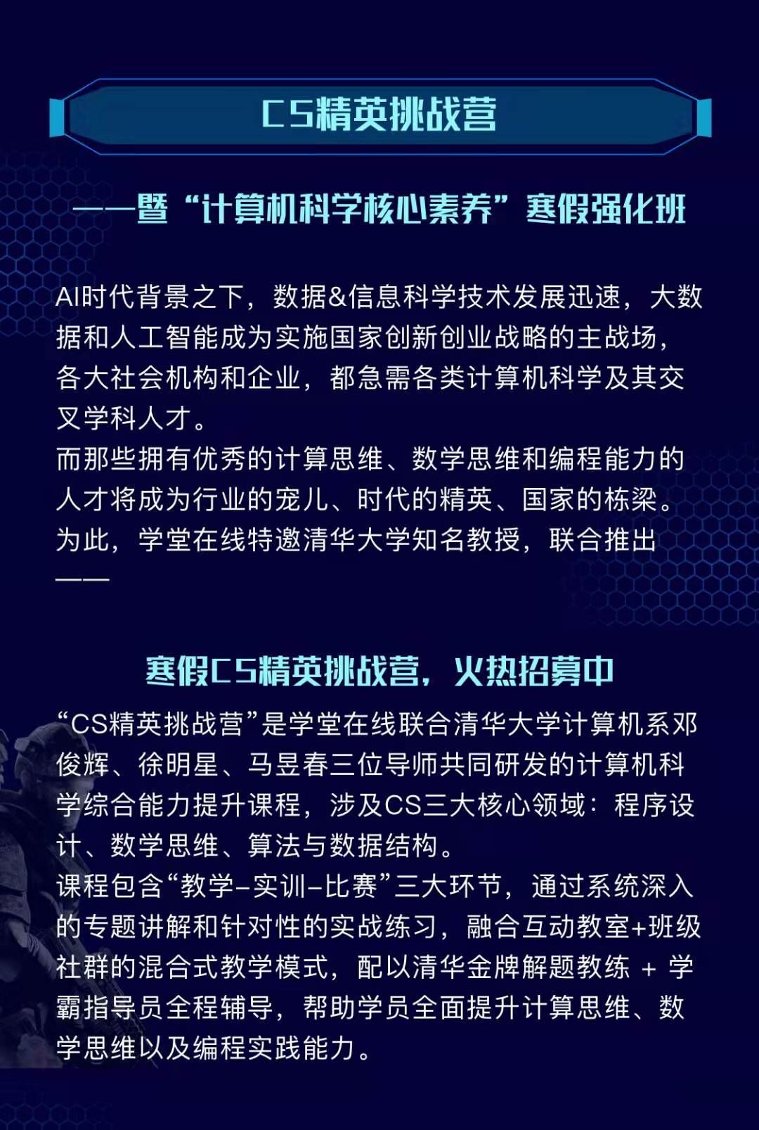 确实,拥有优秀的计算思维、数学思维和编程能力的人才成为行业的宠儿,CS良好的就业出路、不算很高的学习门槛,都让人对他动心不已。在某些论坛上,劝人报考CS、转CS已经成为了热心群众的日常。而出国读CS的浪潮,更是一年比一年火热,数以万千的学子奋不顾身投入其中。如果你也想在计算机核心素养方面快速提升,不妨关注加入这期挑战营。