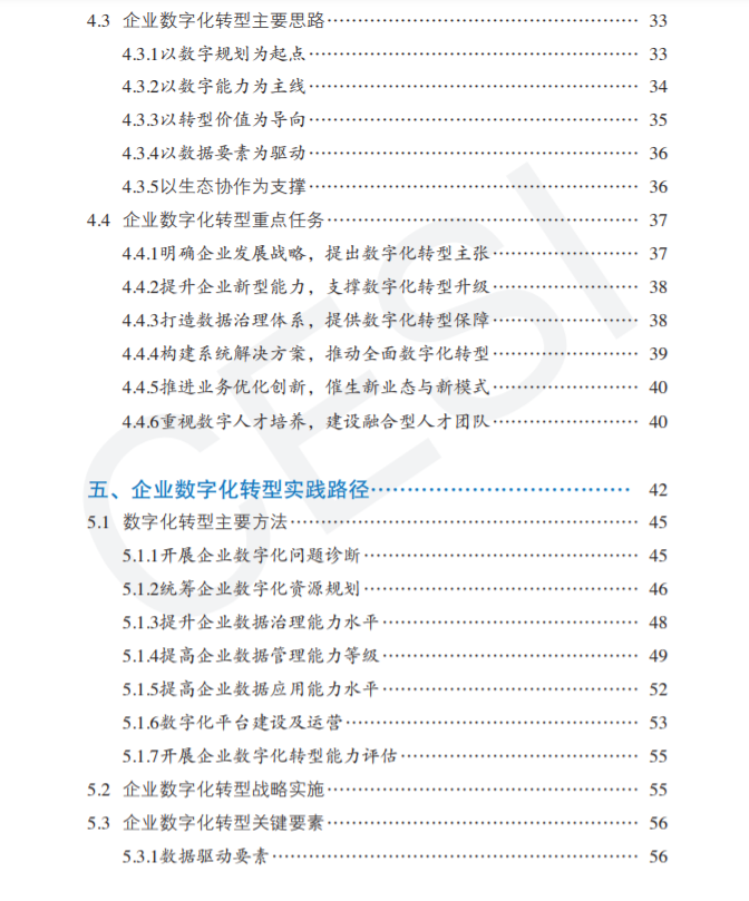 (3)企业数字化转型发展思路,从目标、基本原则、任务和框架方面进行了数字化转型说明;