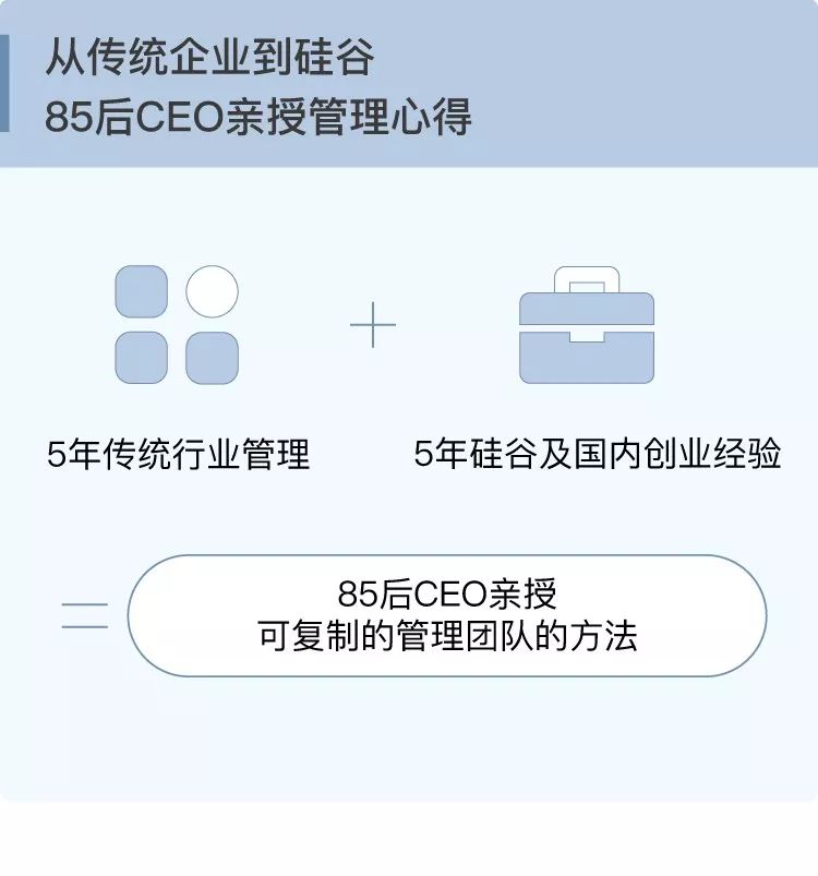 从零起步打造自己的小团队,不到30岁,成为融资过亿的85后企业CEO。 结交4000多家公司的CEO/CFO、600位投资人,交流过2000名优秀职场人。