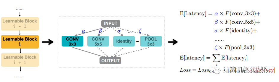 通过将缩放因子λ2(>0)乘以控制精度和延迟之间的权衡,将网络的预期延迟合并到正常的损失函数中。最后的损失函数如上图所示(右)。