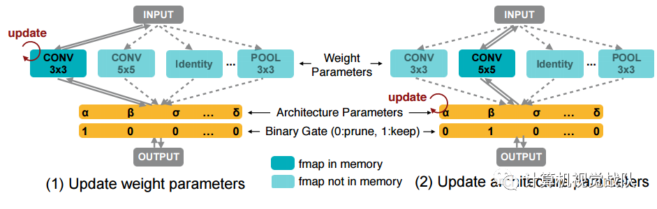 为NAS提供了一种新的路径级剪裁视角,显示了NAS与模型压缩之间的紧密联系。通过使用path-level binarization将内存消耗节省一个数量级;
