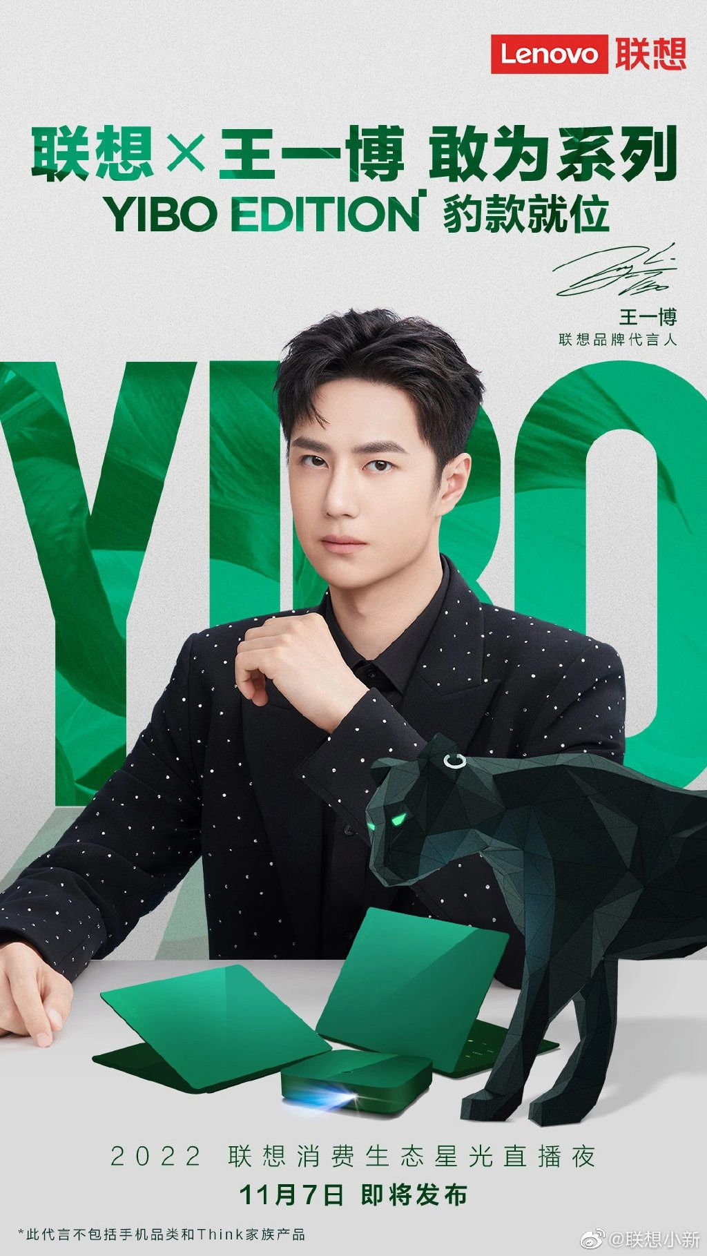 联想宣布,将于 11 月 7 日联合品牌代言人王一博发布“敢为系列”YIBO EDITION 新机,号称“豹款”,同时还公布了“星曜黑豹’海报。从海报来看,新品将包括两款笔记本电脑和一款投影,不包括手机和 Think 家族。不出意外的话,新机将是联想小新 Pro 14 系列、小新 100 智能投影仪的联名机型,可能会有新配色。