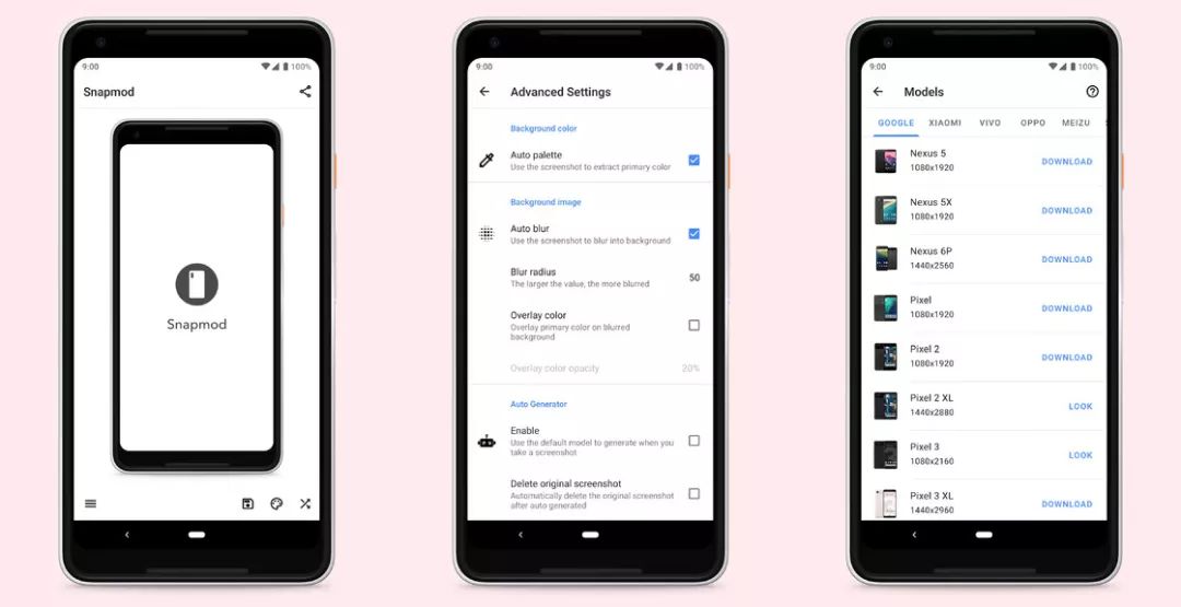 对那些想要美美地分享「带壳的」屏幕截图的小众用户而言,今年上架的 Snapmod 是个难得的惊喜:论界面设计,颇有 Material Design 2 味道的 Snapmod 要比陈旧的 Screener 和久未更新的带壳截图更加现代;论功能特性,它不仅提供带壳截图任务中常常需要用到的背景自动取色、模糊、换壳等等功能,还支持曾被带壳截图作为「杀手锏」功能的截屏自动套壳,省时省力;论机型适配,它覆盖了从 OPPO、vivo、华为、小米到一加、诺基亚、魅族、锤子再到谷歌、三星、Essential 等主流手机品牌的热门机型,并且还在不断进行扩充适配。