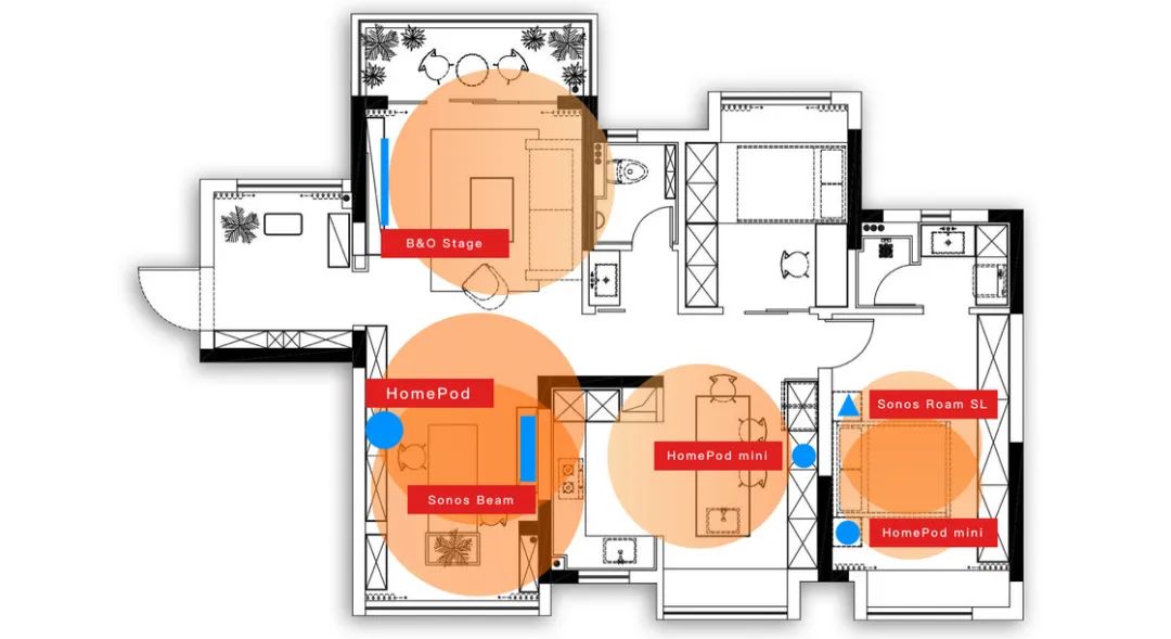 第一次知道 B&O 是它的 A9 系列产品,真的很美,当然相比于价格,是否拥有配得上它的家才是更重要的原因——彼时流浪在宇宙中心的我自然不会去冲这个动。后面终于拥有了自己的房子, B&O 也一定要提上日程,后面选择了它的回音壁产品 Stage。B&O A9区别于 Sonos 的易用,B&O 相比则要「极客」得多——你能想象我买的国行 Stage 在配对时居然要用到 Google Home 来完成设置,我一直很好奇别的「普通人家」买来后究竟都怎样去完成设置。而且就我的使用场景,当我用 Google Home 终于完成设置后,如果我想要更改它的名称,我只能在 Apple 的 Home App 里设置。我不知道是因为某个我刚好拥有的设备或者 App 触发了这个奇妙逻辑,但我依然费解。B&O 的立体发生系统但抛开这些个毛病,Stage 着实是一个非常厉害的回音壁,拥有 11 个扬声器单元和立体三声道系统的它是杜比全景声绝佳的呈现工具,在我没有配对其它音源的前提下,坐在远离其近三米的沙发上我应然能从 Netflix 的杜比片源中「听声辩位」,综合它非常「高级」的工业设计,我认为是对得起这份价格的。但其实现在如果再给我一次机会,我可能会选择 Sonos 的回音壁,因为如果想要更好的家庭影院体验,还是必不可少另一个组合音源,但 B&O 我真的只买得起一个。值得一提的是,尽管我们可以通过 AirPlay 实现多个音箱同步播放某一首音乐或者作为视频的扬声器,但家庭影院系统是一个完整的体系。当我们将多个设备组合成套时,它不止是「扬声」,还需要根据不同设备乃至摆放位置的特性去调整各自的发声特点或中高低频,所以是需要使用到各个厂商特定的家庭影院系统得以实现,也就是说我们可以用多个跨品牌音响群组听歌,但家庭影院系统一定得是同一品牌联动。不可否认 HomePod 群组实现家庭影院杜比全景声是一个便捷稳定的方案,但它需要依赖于 Apple TV,除非你能确保自己所有的影视源都能通过 Apple TV 实现,那么最好慎重考虑这套方案。