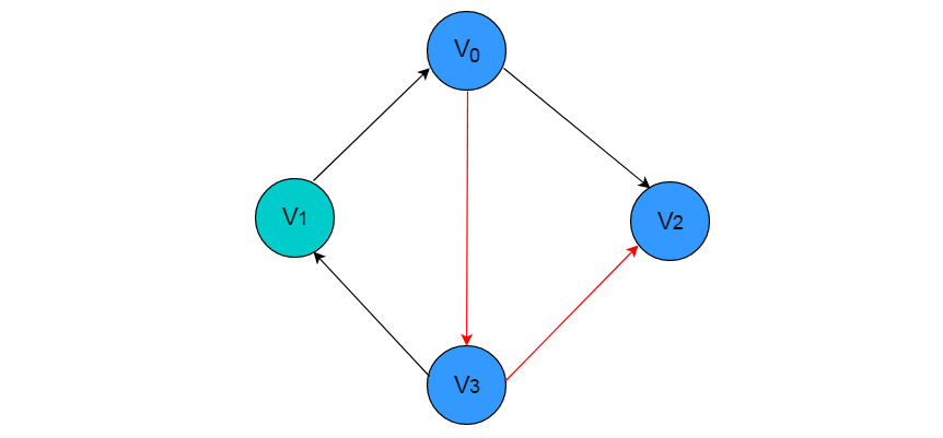 例如:在图 2.8 中所示图中依次访问顶点 V0 、V3 和 V2 ,则构成一条路径。