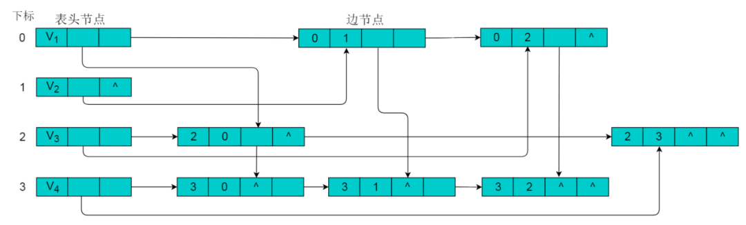 例如:图 6.3 所示的有向图采用邻接表存储。