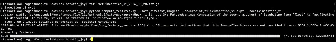 python compute_features.py --data_dir=test_images/ --checkpoint_file=inception_v1.ckpt --model=inception_v1