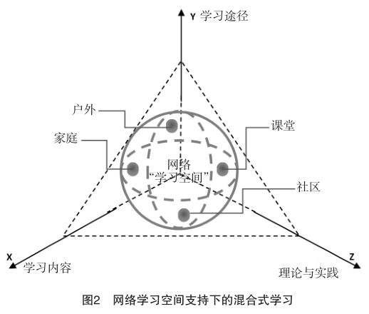 基于网络学习空间的混合式学习主要从学习途径、学习内容以及理论与实践三个维度展开。